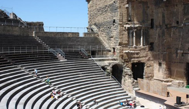 奥朗日歌剧院建于公元一世纪奥古斯丁大帝统治时期,由凯撒大帝第二军团的养老士兵建成,是目前全世界保存最好的古罗马时期剧院,剧院最多能容纳约1万名观众,观众席分为3部分,根据观众的身份和等级划分,最底层为乐队,中层接待罗马贵族,最顶层接待妓女,奴隶和非罗马人。歌剧院至今保存完好,甚至可以进行演出任务,每年的暑期,这里都会进行歌剧或者音乐会的表演,值得一提的是,在2013年的7月,我国著名青年钢琴演奏家朗朗还在这里举行过专场音乐会。