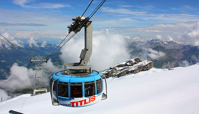 铁力士峰是阿尔卑斯山著名的风景区,登上铁力士峰需要乘座三种交通工具。第一种为普通吊车,每辆可坐六人,吊车旅游由山脚开始,途中有一个落客点。如乘客需要登上铁力士峰,便应在第二下客点下车。到达第二个落客点后,便转乘第二种交通工具,第二种交通工具是一辆大型吊车,到达第三个落客点。到达第三个落客点后,转乘第三种交通工具,世界首创的旋转登山缆车,共可承载80位乘客的旋转缆车,每程都会旋转360度一圈,摄人美景尽入眼帘。